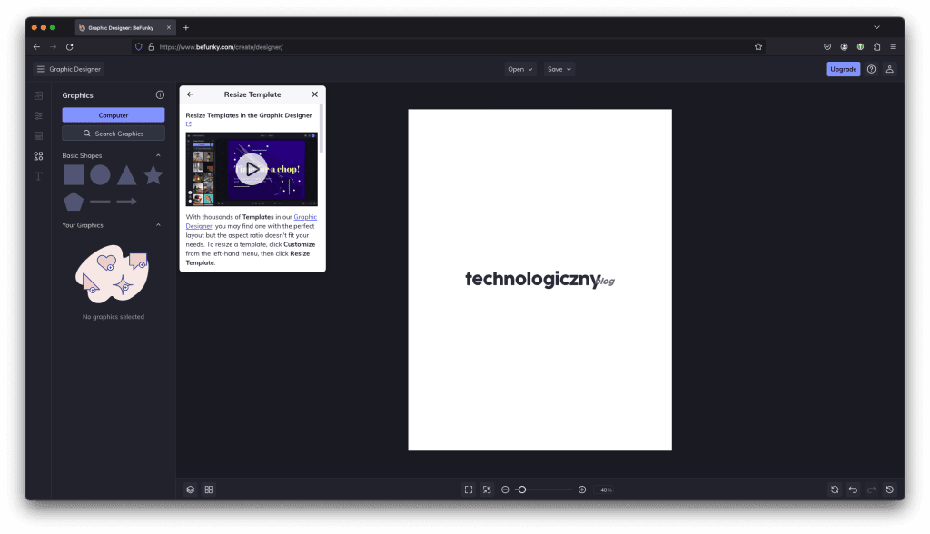 BeFunky to program do edycji zdjęć i grafiki online. Oferuje wiele funkcji edycyjnych i projektowych. BeFunky jak i Canva posiada wiele wbudowanych szablonów, które pozwalają na szybkie stworzenie atrakcyjnych projektów, takich jak plakaty, zaproszenia, banery reklamowe i wiele innych. Posiada wiele narzędzi edycyjnych, takich jak korekcja kolorów, retusz zdjęć, usuwanie tła, dodawanie efektów, itp. BeFunky jest bardzo łatwy w obsłudze i dedykowany jest dla użytkowników, którzy potrzebują szybkiego i prostego narzędzia do edycji grafiki i projektowania.